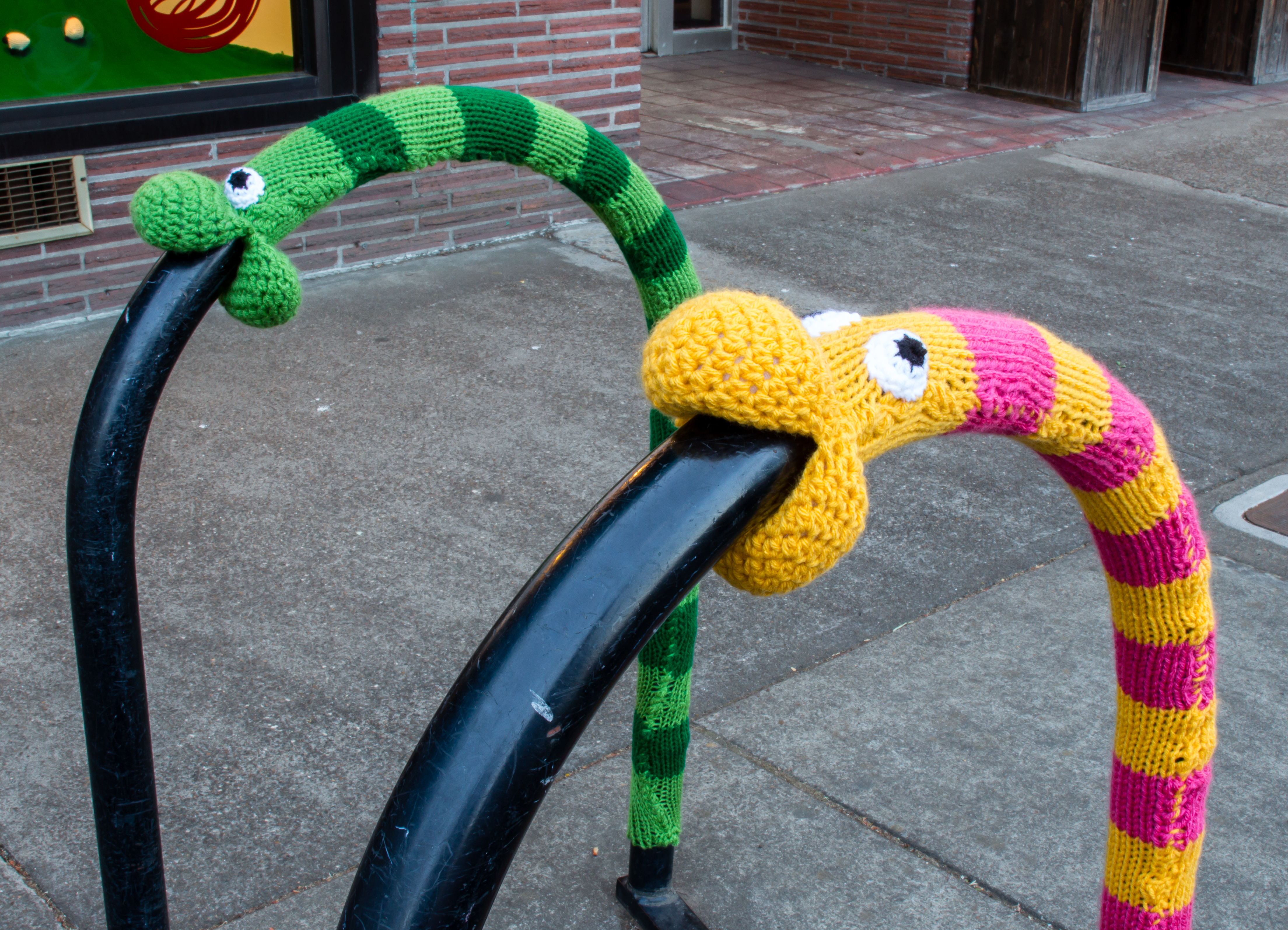 As if hanging out with Sonia and Liz at Stash wasn’t enjoyable enough, we entertained ourselves by installing a pair of yarnbombs out front before we started. Everyone who stopped and hugged them lifted our spirits while we worked!