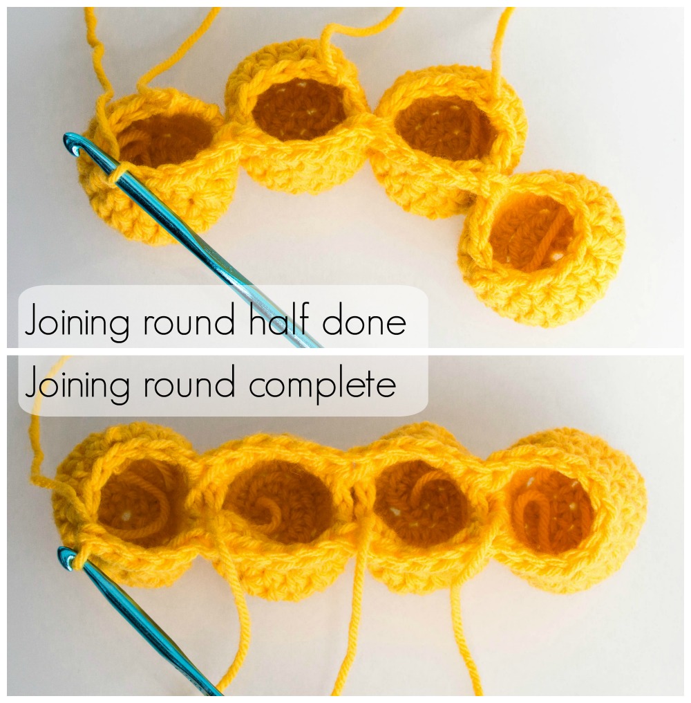 That said, if you want to sew the holes later, you can. Take it as a tip from having made these a million times: this is the simplest solution to these gaps. Also, the size and shape of the work are easiest to manipulate just past the joining row. If you wait til you’re done, you’ll be fiddling a lot more trying to get at the insides. If you think of an easy way to crochet them shut on the joining row, we’d love to know!