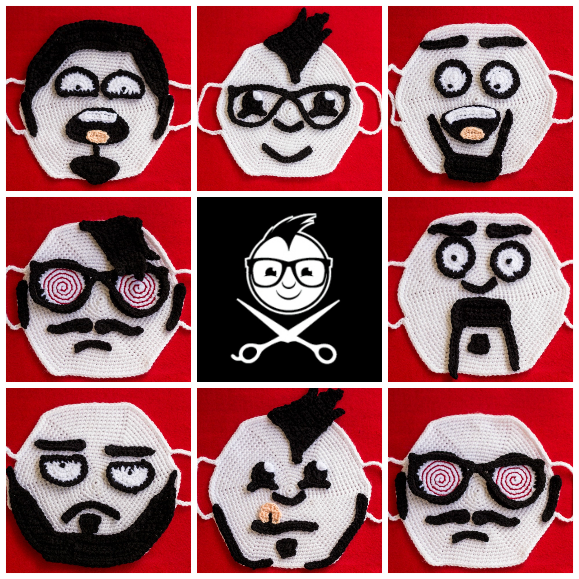Concept: Photobooth prop mask with interchangeable facial features, including the shop’s face logo and trademark facial hair services. All props mounted on framed felt matching the shop’s interior design.