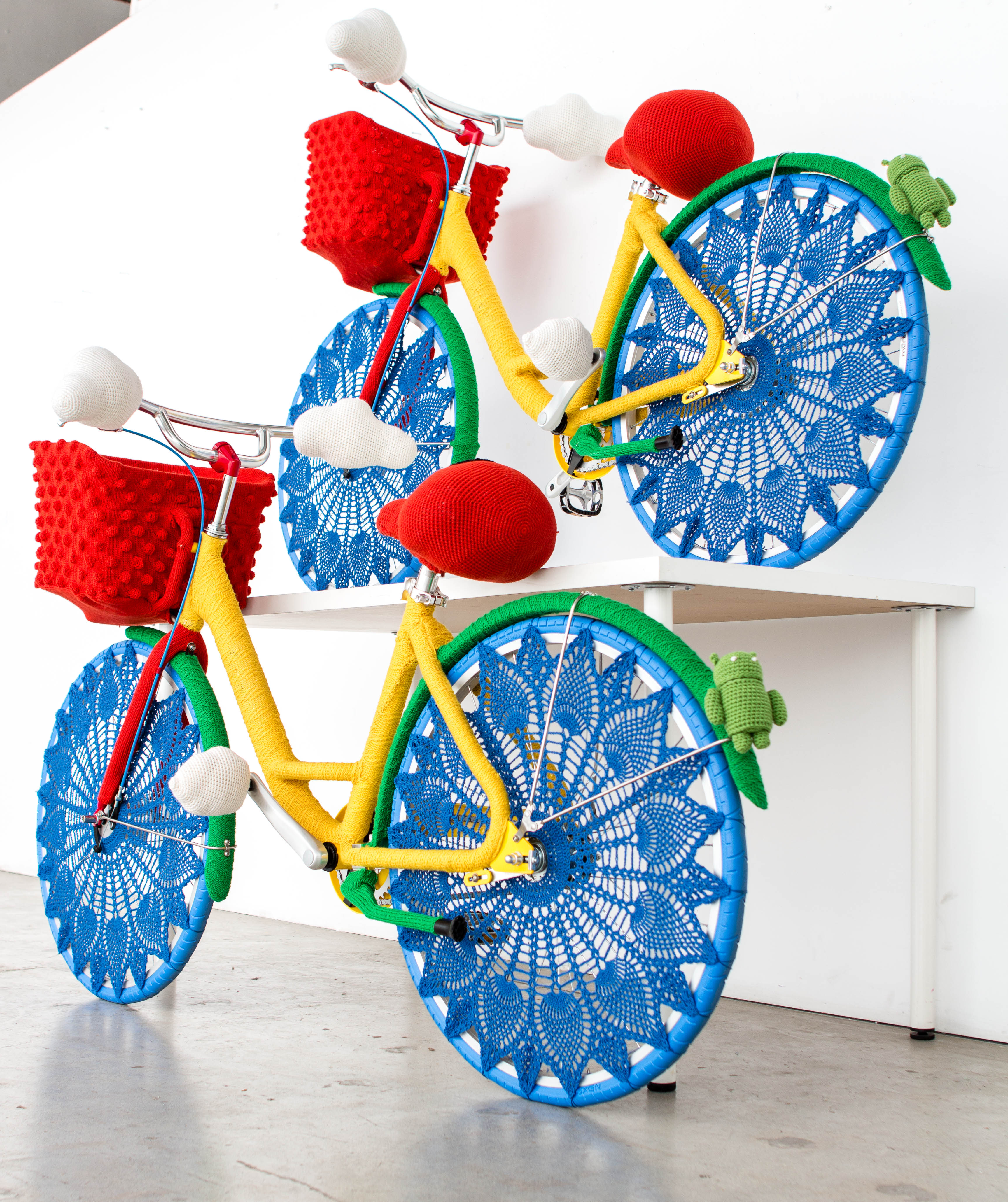 Custom yarn bombed bikes for Google Cloud offices in Sunnyvale, CA.