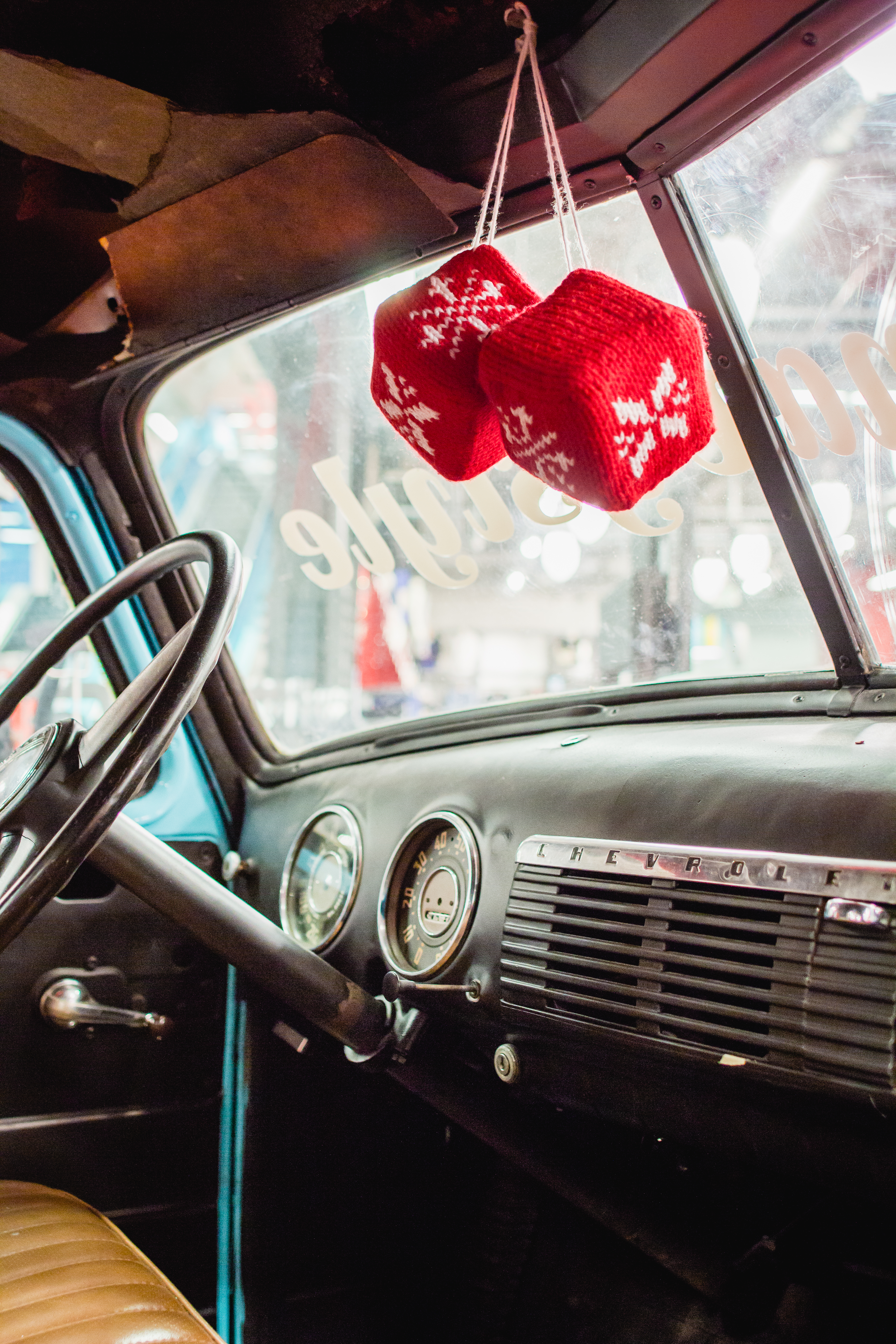 A knit yarnbomb installation for a 1950 Chevy truck at Old Navy’s San Francisco Flagship store. We repurposed it into 19 keepsakes for the Old Navy design team. We also yarnbombed these three bumper cars in the New York Flagship store.