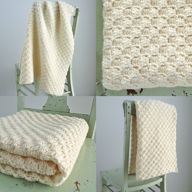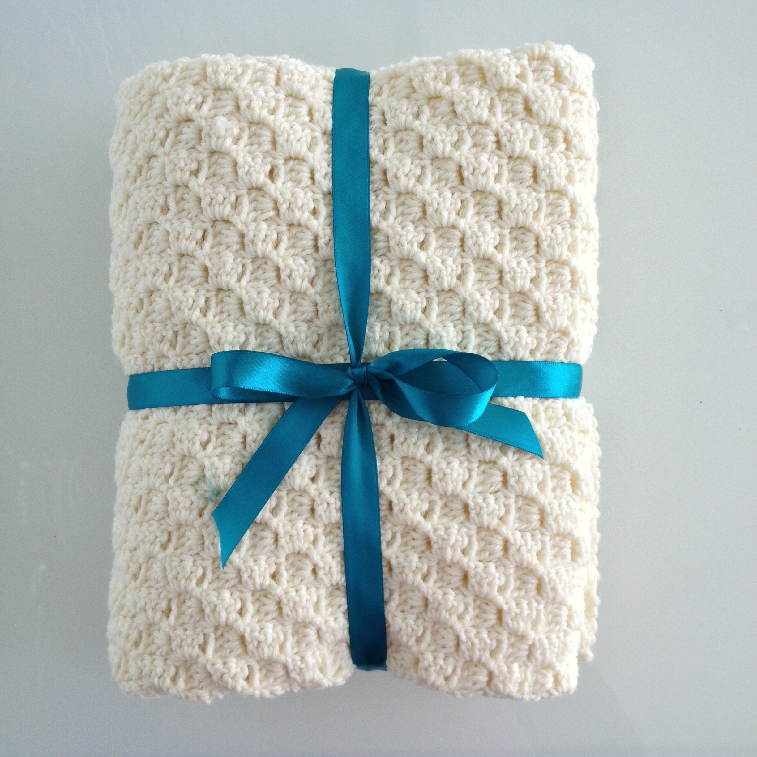 Hand crocheted recreation of a vintage baby blanket from photos for a new family.