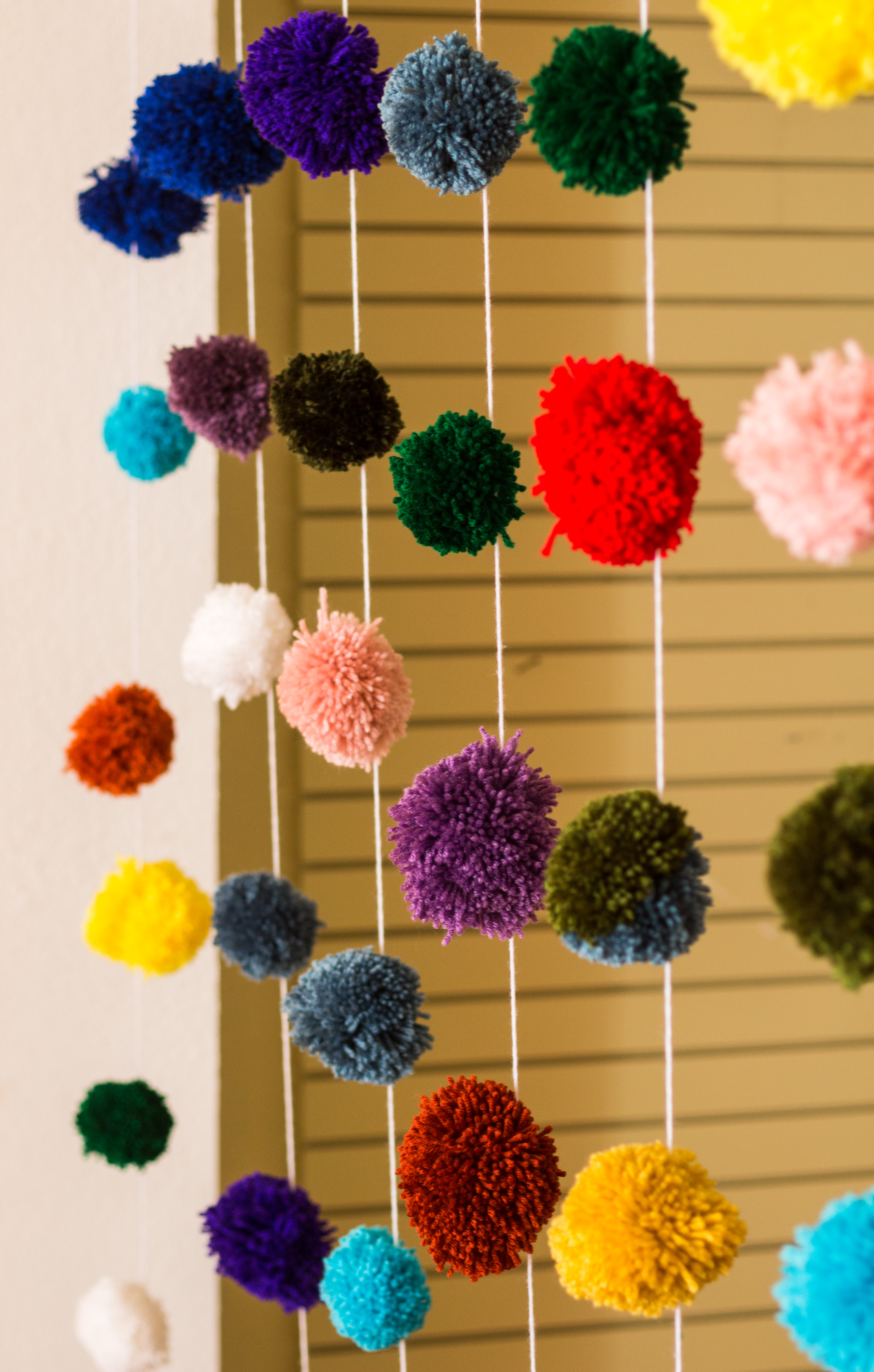 Jill’s installation’s mission was to prevent tipsy connoisseurs from missing a step in the room. She cleverly employed her pom-pom making skills on a stash-busting curtain. Over 125 pom-poms in every color looked great from every darn angle. Next the pom-pom queen plans to expand her skills to carefully crafted, multi-colored pom-poms.