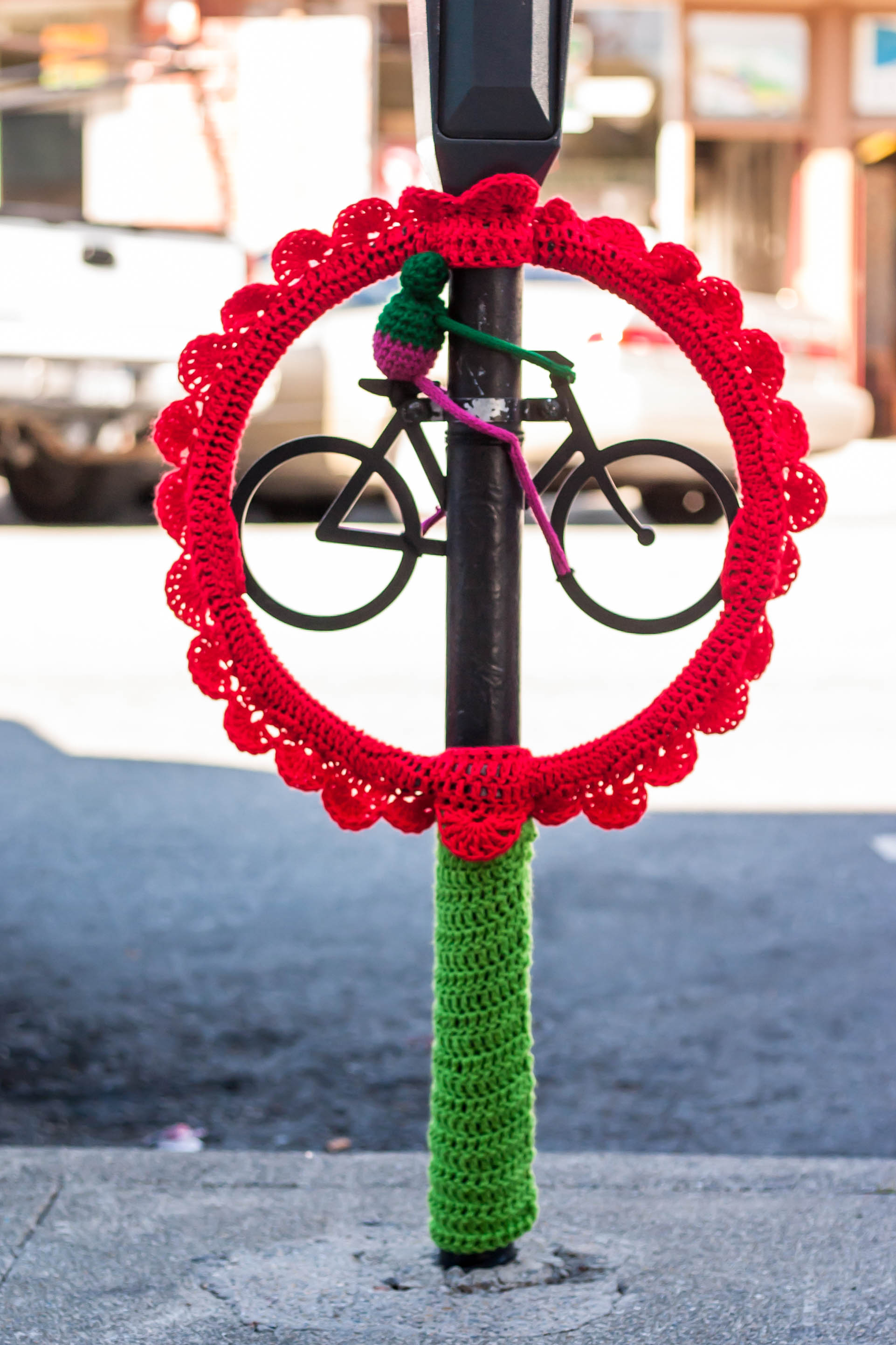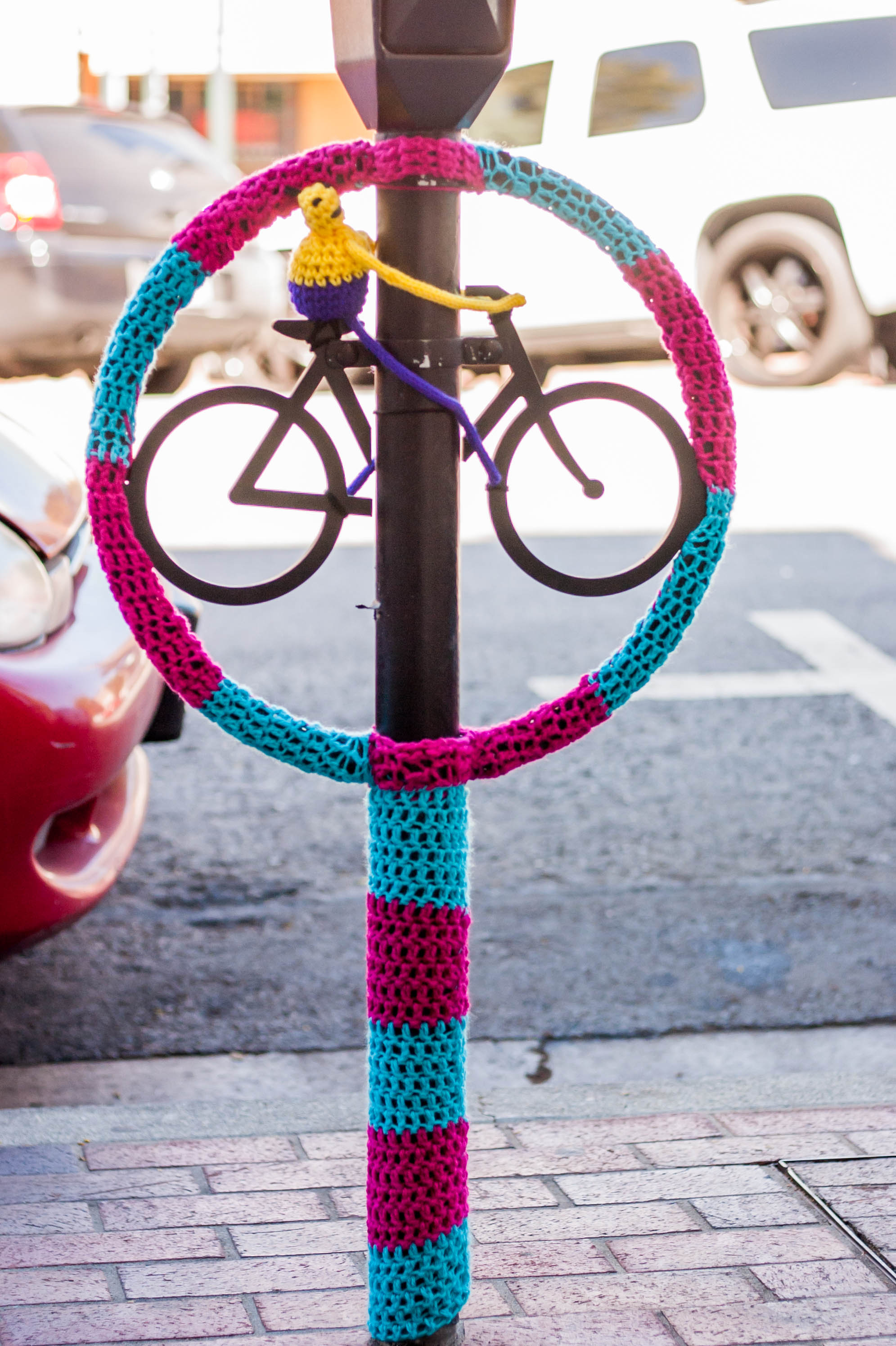 Yarnbombing is a new counterpoint in street art. Our yarnbombs transform objects with an aim to delight and inspire.