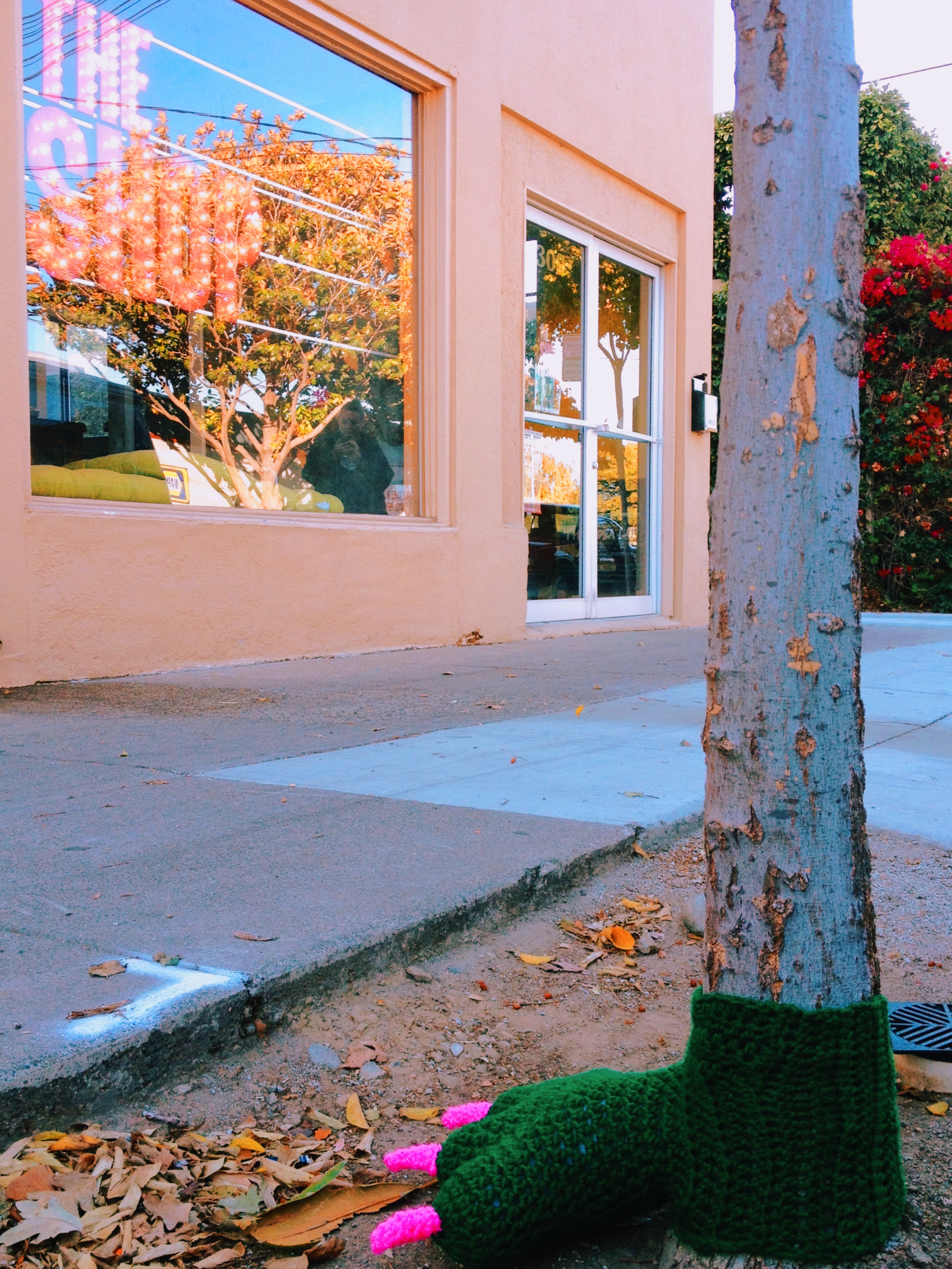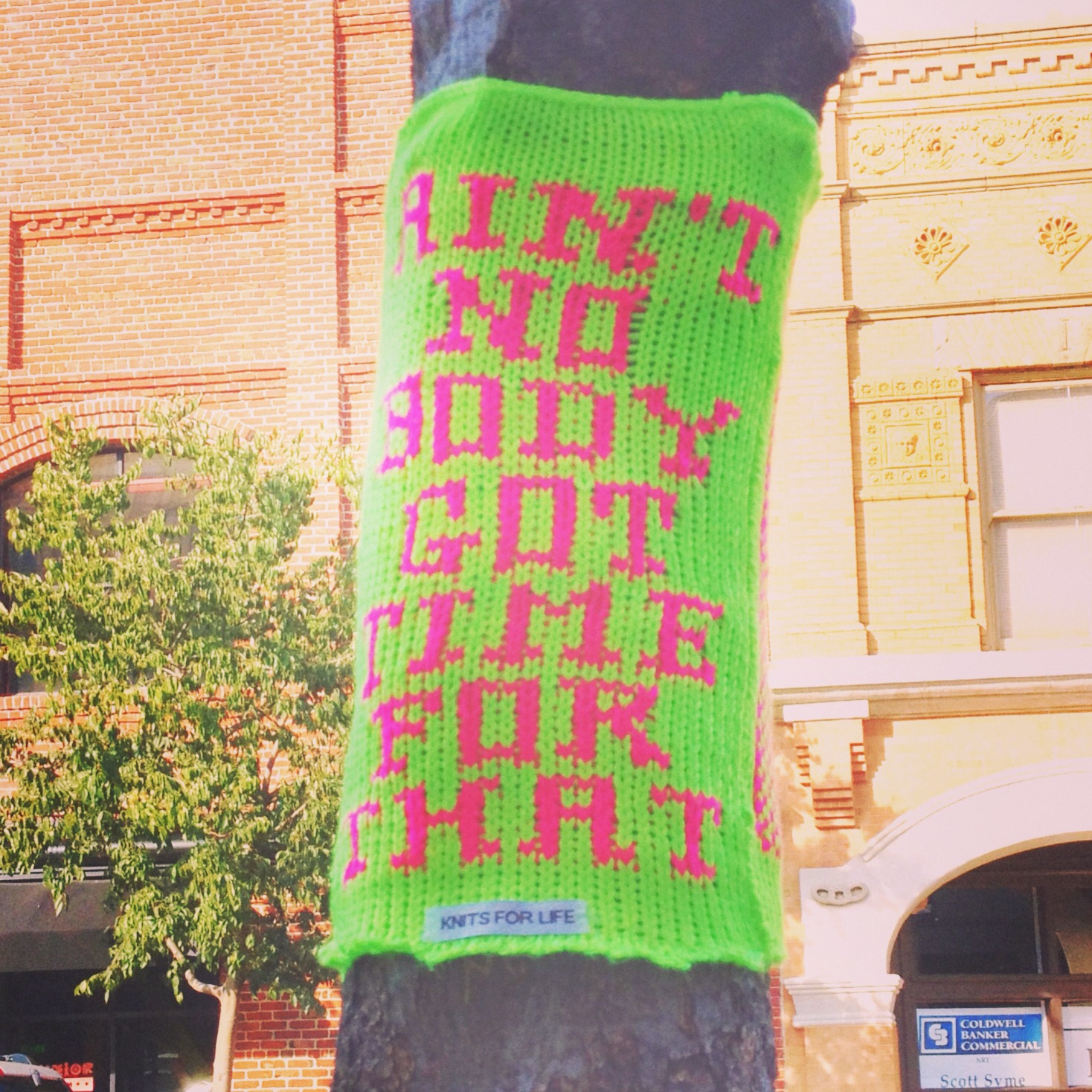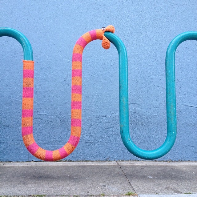 We make, install, maintain, and remove the vast majority of our work and almost always get permission to install. We have never “gotten in trouble” or been asked to remove a new yarnbomb. Our yarnbombs do not damage flora and fauna.  Yarnbombing is not a waste of time.